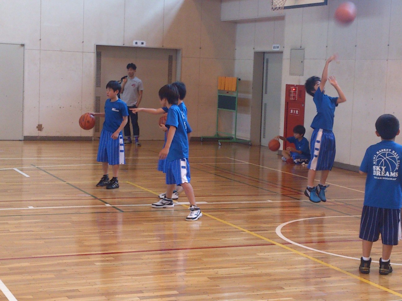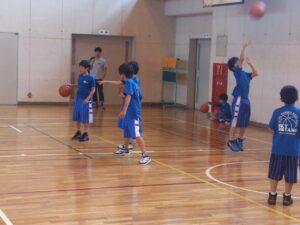 「高学年バスケット教室」 基本的なボールの扱い練習から初めて、シュート練習などを行います。